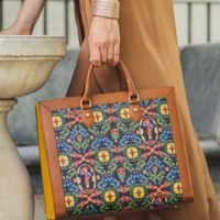 SHOPPING BAG BUSY DONNA DI COPPE “SCIURI” GIALLA E CUOIO