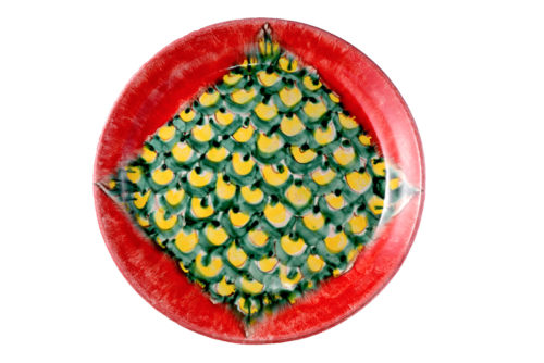 Artistic serving and wall plate, in Caltagirone ceramic. Entirely made and decorated by hand by the master craftsman from Calabria Nicolò Morales.