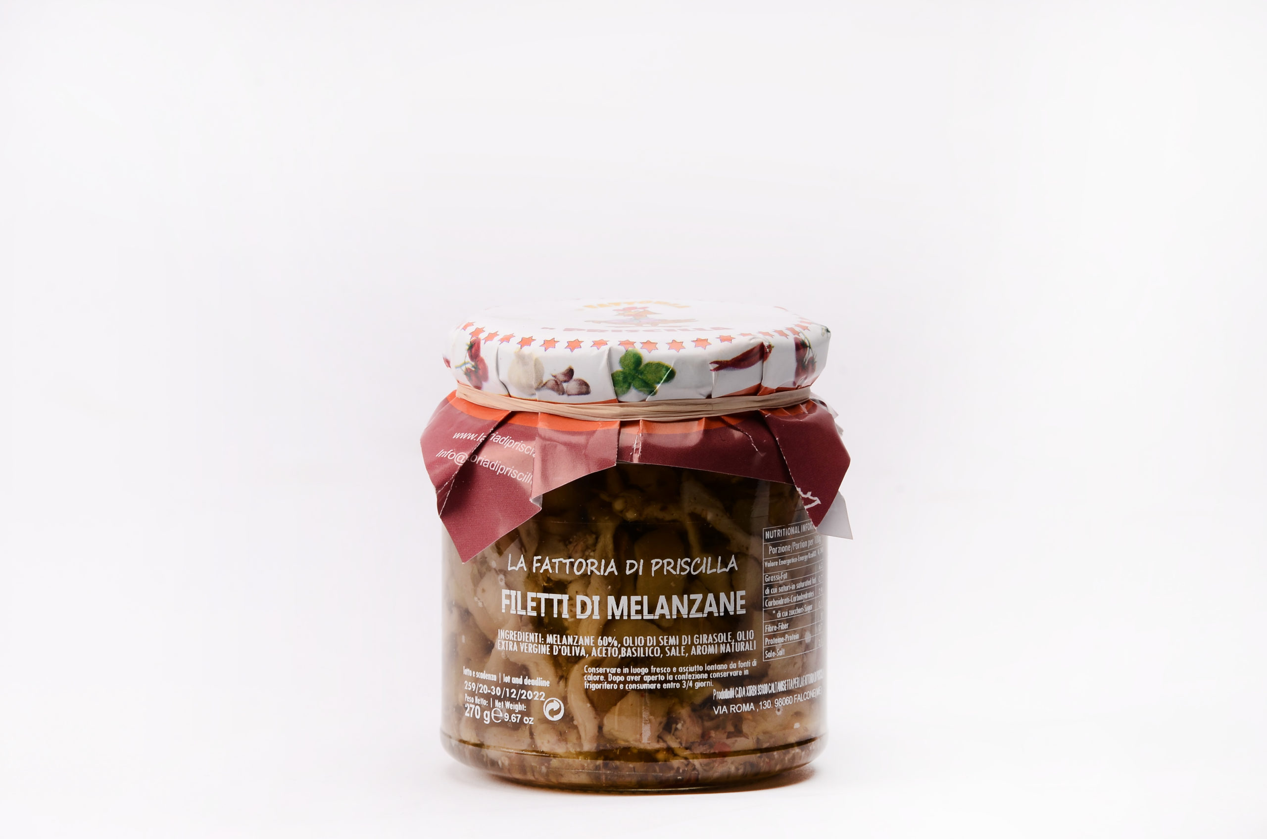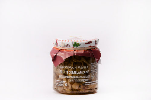 Ingredients: aubergines 60%, sunflower oil, extra virgin olive oil, vinegar, basil, salt, natural flavors