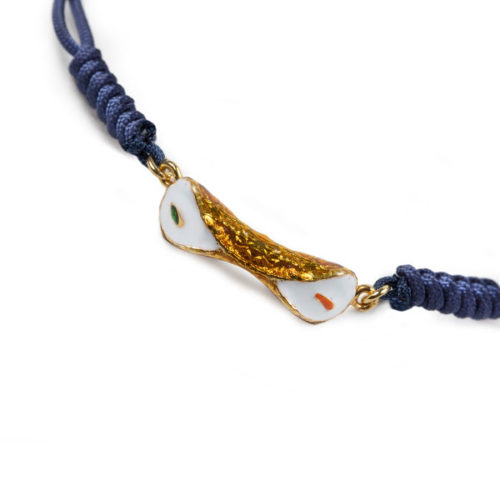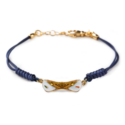 Bracelet in 925 silver, gold plated, enamels and cord in  hand-knotted hypoallergenic fabric with extendable closure.