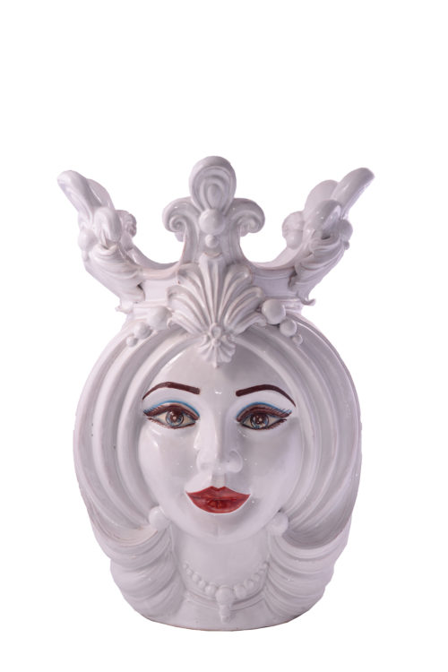 Testa di moro lady, total white decoration and red lipstick.