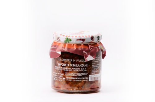 Ingredients: aubergines 60%, tomato, sunflower oil, olive oil, olives, capers, vinegar, salt