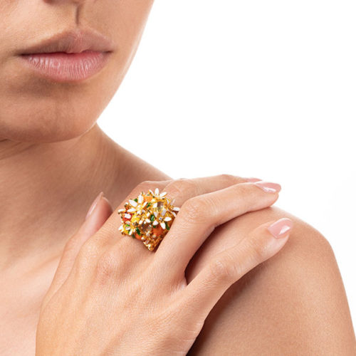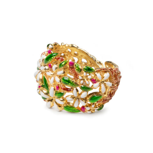 In the air the scents of a new season, made of lightness and renewed beauty. Jasmine, with its fragrant white flowers, is a symbol of pure love and its aromatic notes are used to give well-being and soothe pain. A ring in which the refined beauty of the plant and its delicate petals is celebrated, often associated with luck in marriage.