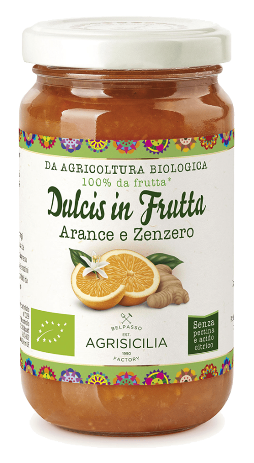 Dulcis in fruit Orange and ginger, produced with grape sugar, very delicate scent typical of orange slightly spiced thanks to ginger and with a fresh and sour taste.