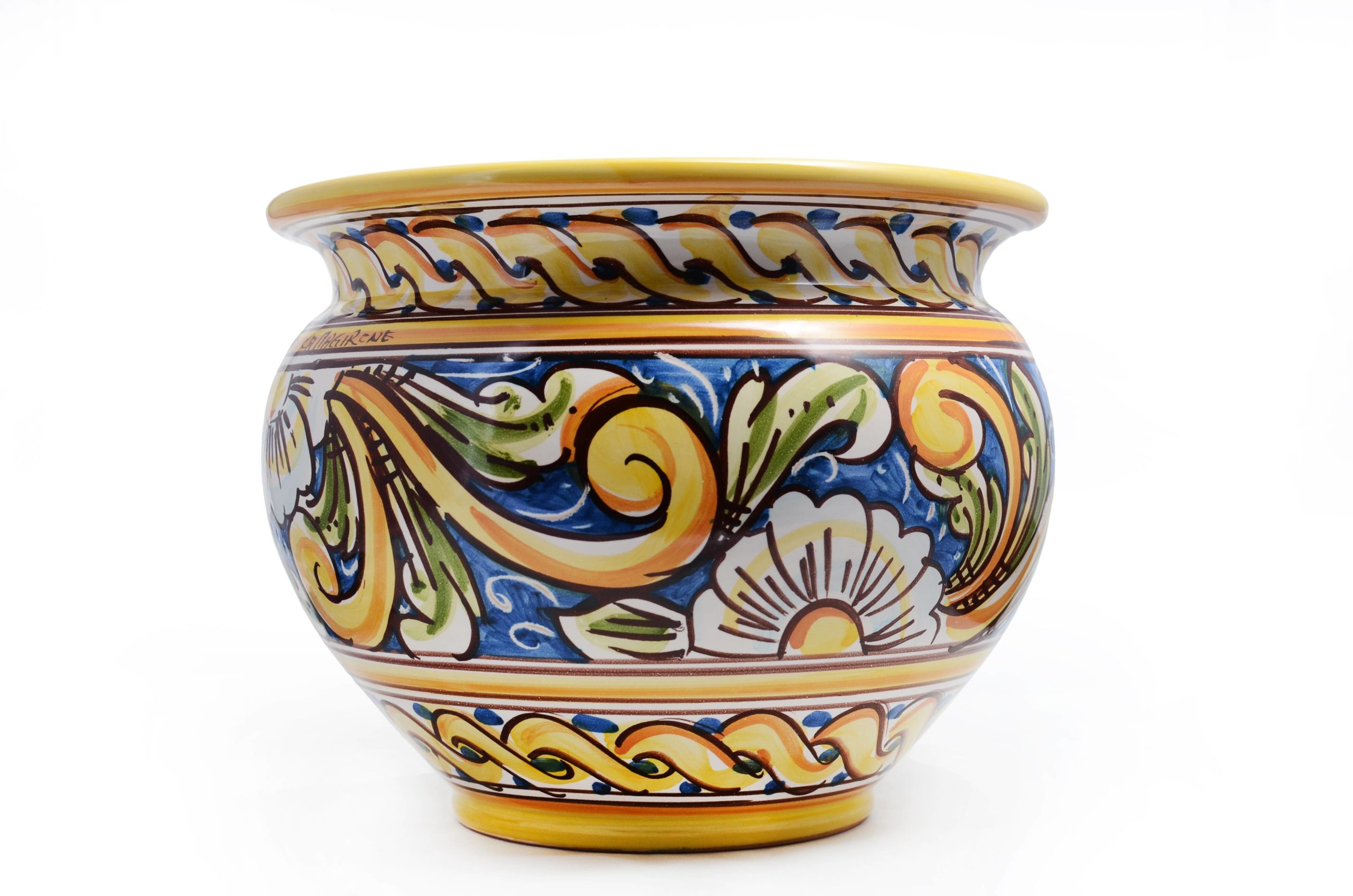 cachepot in ceramica, decoro floreale, Caltagirone.