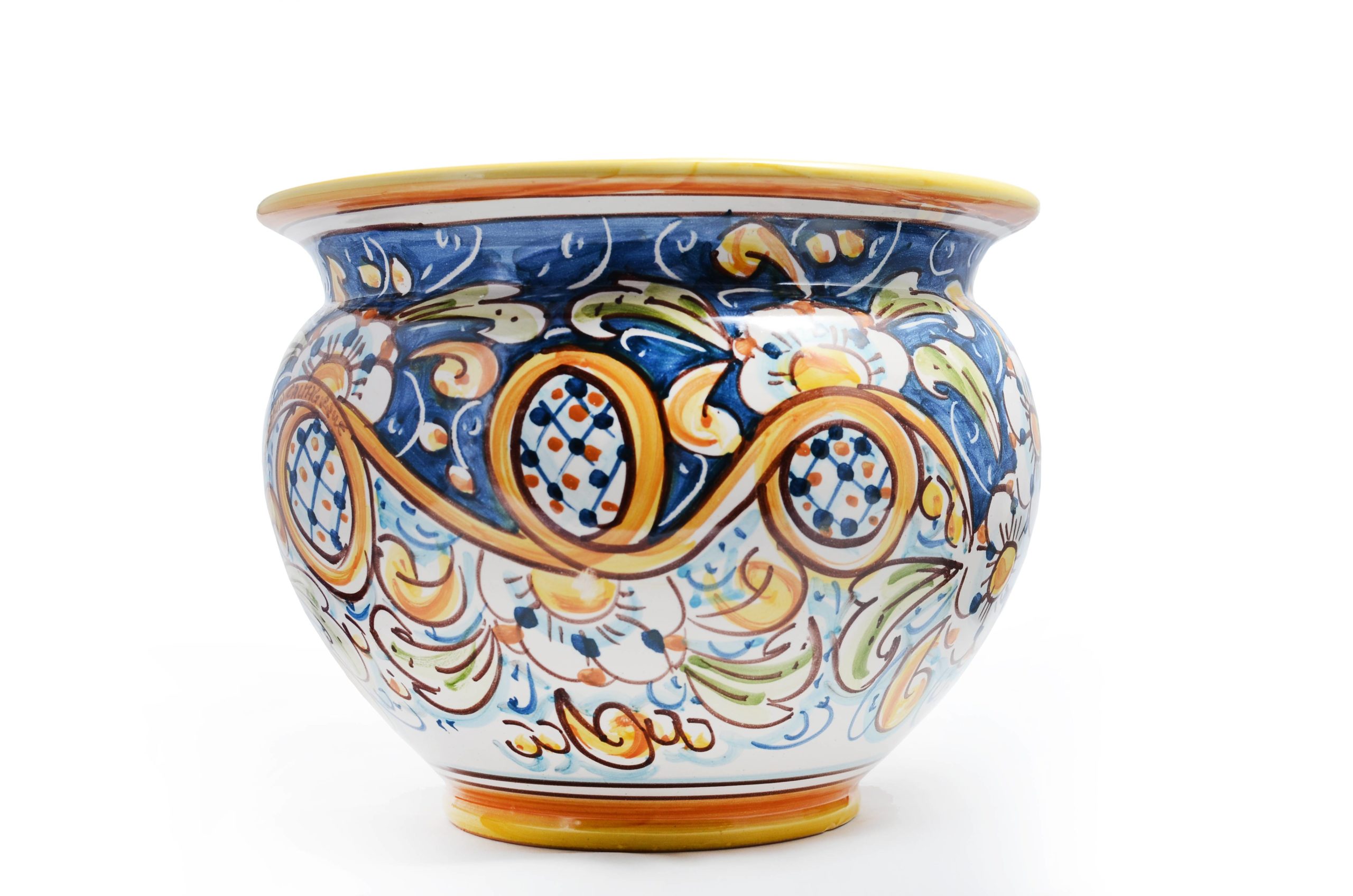 cachepot in ceramica di Caltagirone, decoro floreale.