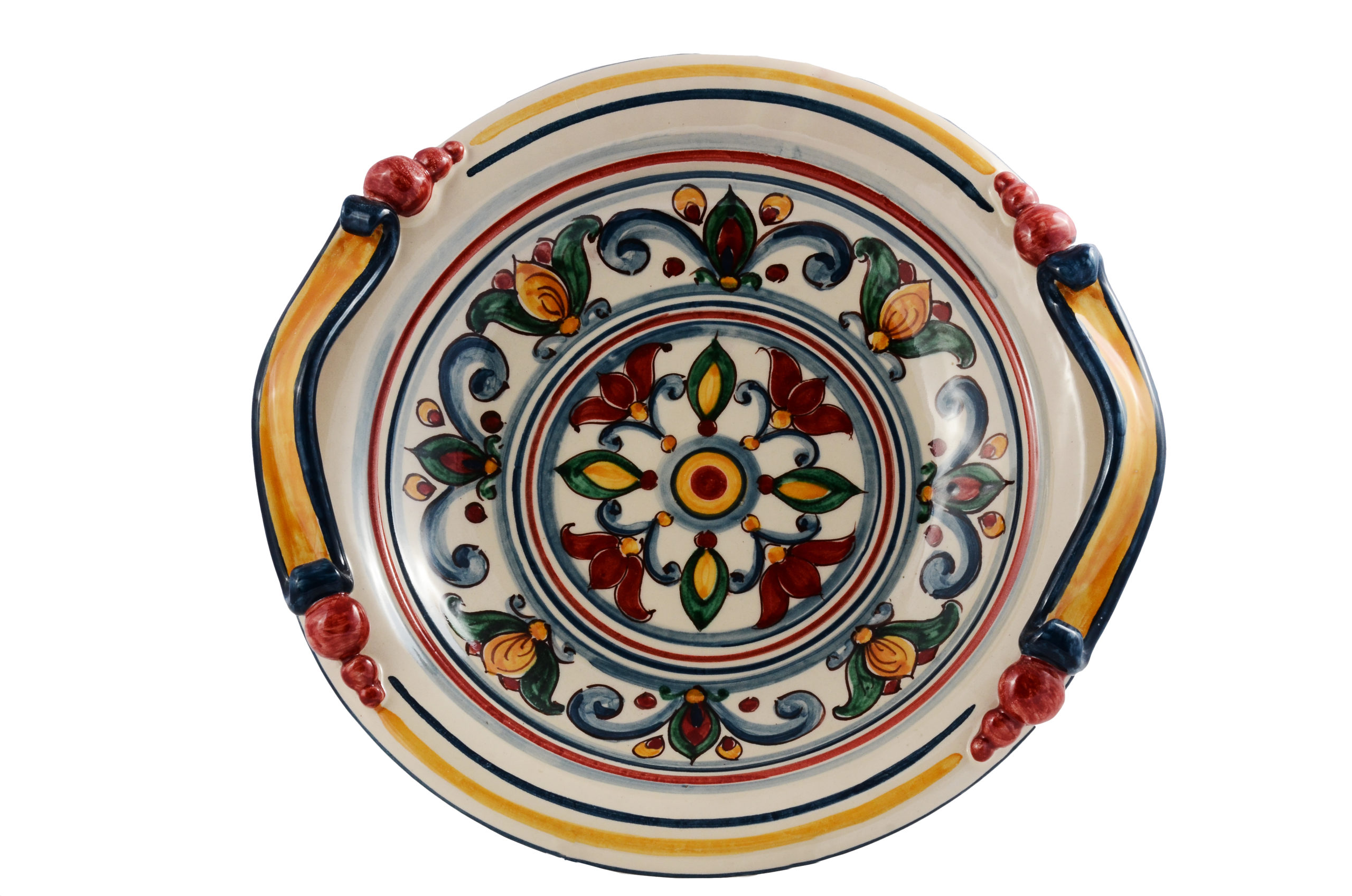 Centrotavola concavo in ceramica smaltata e decoro floreale.