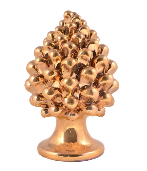 Pigna in ceramica di caltagirone decorata da vernice di oro zecchino.