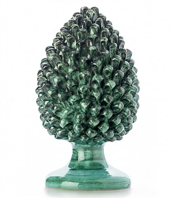 Pigna verde ramina in ceramica, interamente realizzata e smaltata a mano da mastri artigiani siciliani.