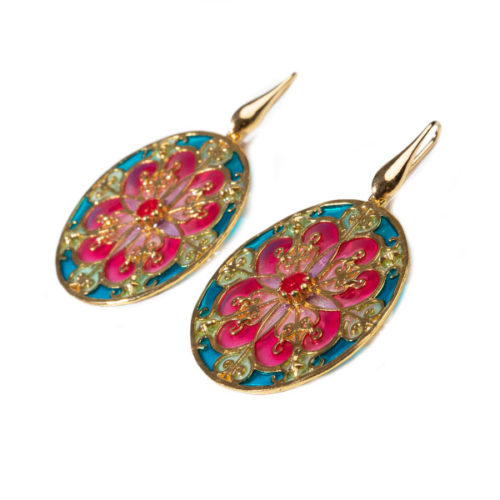 Orecchini in argento sterling 925 placcato in oro e smalti.